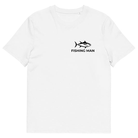 T-shirt pêcheur blanc – coton bio – logo thon Fishing Man